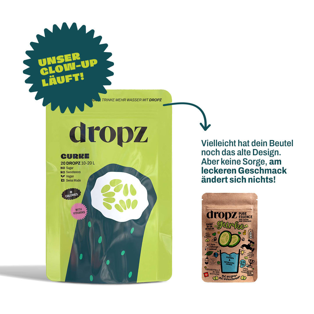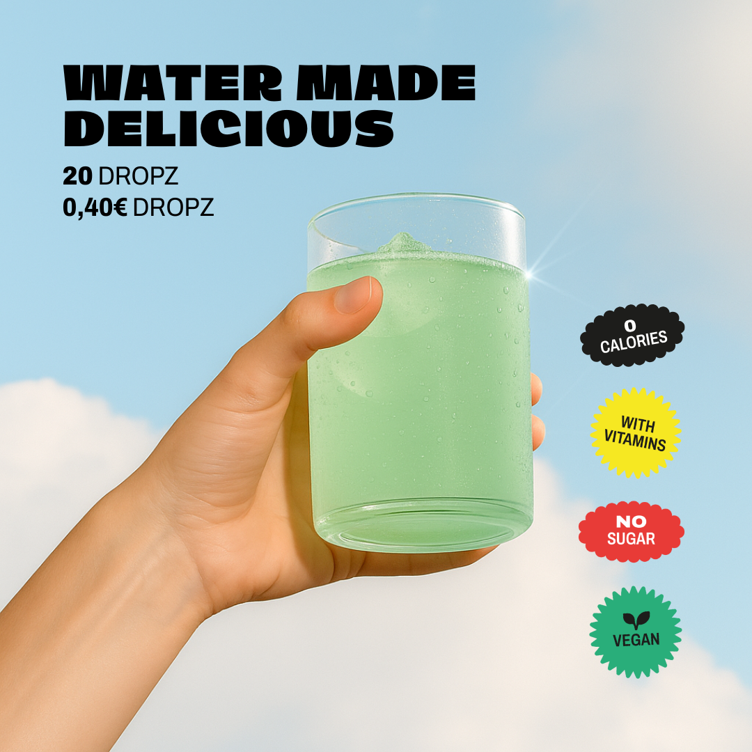 Ein Dropz reicht für 250–500 ml Wasser — je nachdem, wie intensiv du den Geschmack haben möchtest.