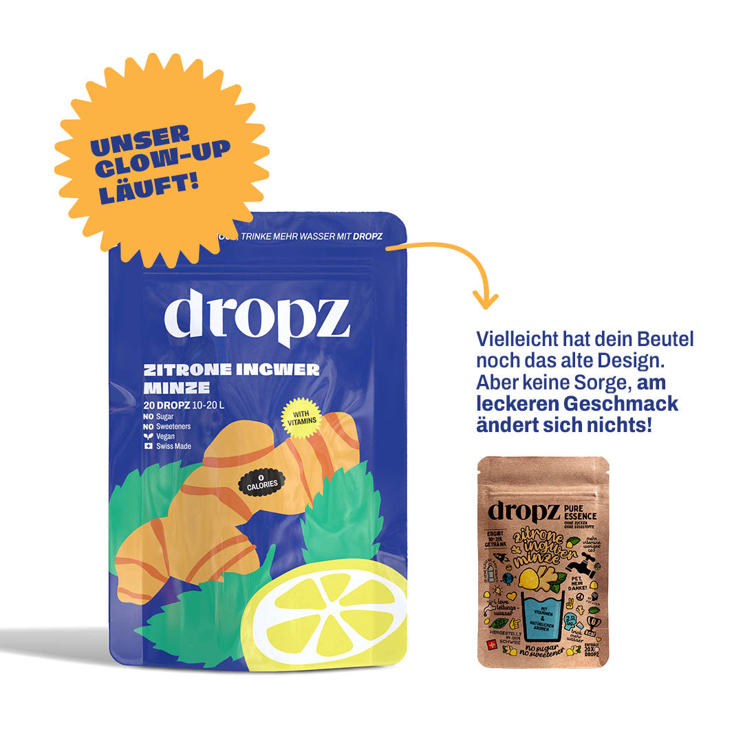 Ein Dropz reicht für 250–500 ml Wasser — je nachdem, wie intensiv du den Geschmack haben möchtest.