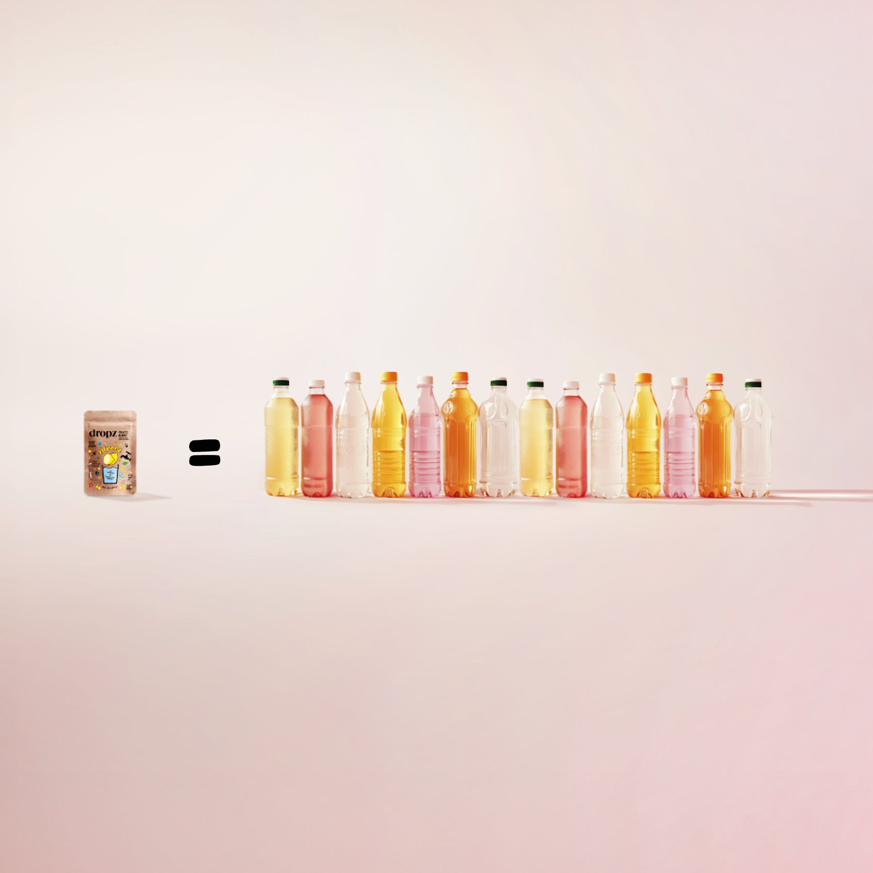 Eine Packung Dropz ergibt je nach Geschmack ca. 10 bis 20 Liter Getränk. Kein Flaschenschleppen, kein PET-Müll, kein Zucker, keine Kalorien – dafür natürliche Aromen, herrlich fruchtiger Geschmack und wertvolle Vitamine für dich.