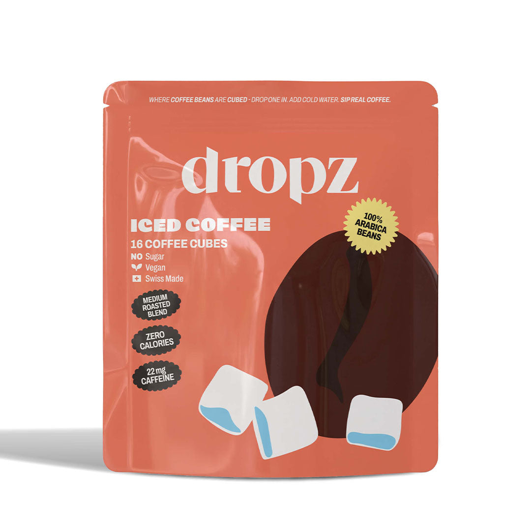 Iced Coffee Cubes sind Würfel aus echtem gebrühten Kaffee, Schock gefroren, um Aroma und Koffein zu bewahren. Einen dropz Cube ins Glas geben, kaltes Wasser darauf giessen, trinken, geniessen. Wie du es magst: pur, mit Hafermilch oder auf Eis.